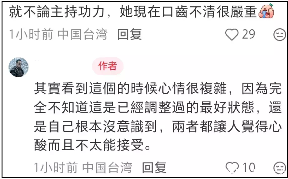 从网友的态度看,小S已然消耗了太多外界对于她的同情心,更令人难以接受的,还有小S愈发退步的主持能力——大S不在了,没办法护着小S了,小S竟然还不想着成长吗?