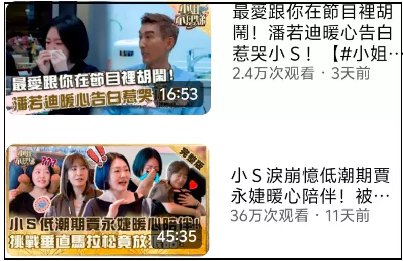 然而就节目仅仅几十万的播放量看,事不过三,外界再怎么心疼小S失去姐姐,看她哭一两次也够了。