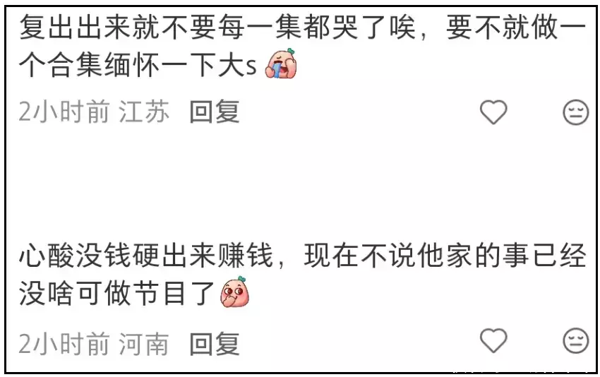 不少看着大小S节目长大的观众,对小S已是恨铁不成钢了,开始觉得她还不如不要复出算了,至少能把最美好的样子留在记忆里。